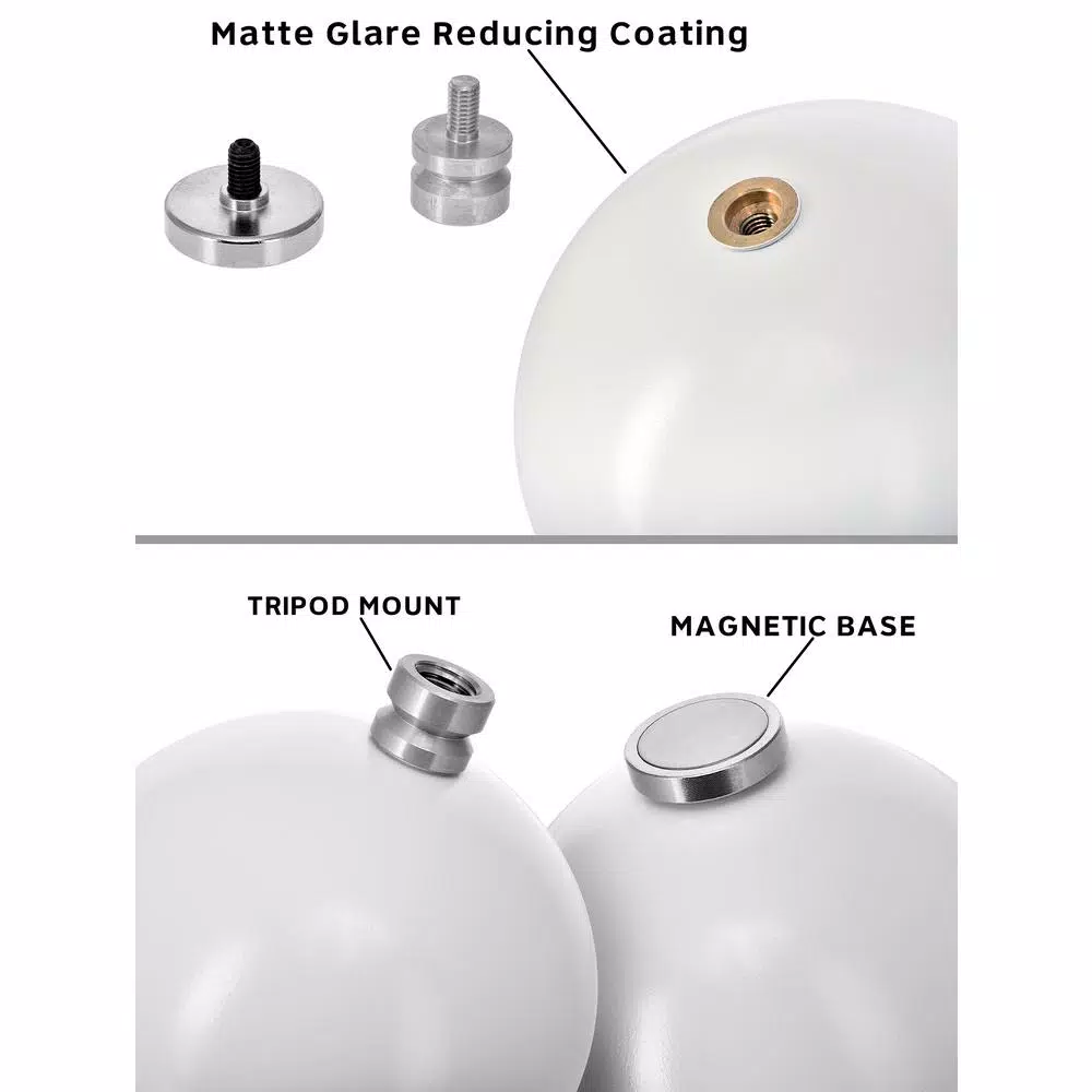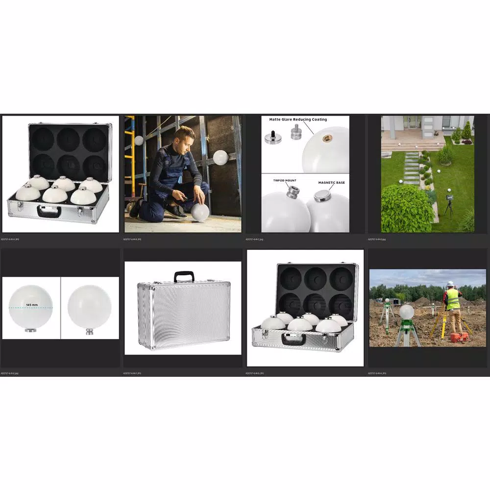 The AdirPro 5.7 in Survey Laser Point Cloud Scan Reference Target Sphere, comes with a snug, aluminum carrying case. Made with a white coating that reduces matte glare, these Scanning Spheres are ideal for all surveying applications. Boasting 145MM diameters, these spheres are well-equipped with a magnetic base for easily affixing to various surfaces. The spherical shape of the unit allows for the highest possible scanning efficiency from various directions, making it an effective laser scanning target. The carry case comes with pre-cut inserts for safe travel. Target Spheres are used to create a baseline to define coordinate references inside the scanning data cloud. The AdirPro scanning spheres are compatible with most major laser scanner manufacturers.