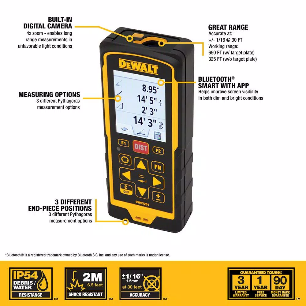 The DEWALT DW088K Cross Line Laser Level projects bright crossing horizontal and vertical lines for various leveling and layout applications. This laser maintains full brightness for visibility and extended range. A DEWALT 3-Year Limited Warranty is included with this laser for added peace of mind. DW0881T Compatible with all DEWALT line and spot lasers, the Laser Tripod with Titling Head is easily maneuverable and has a lightweight, durable aluminum construction. It has an integrated level, allowing the ability to establish level ground. It extends open up to 72 in. H and collapses to 38 in. for storage. This tripod features a 1/4 in. x 20 in. mount thread.