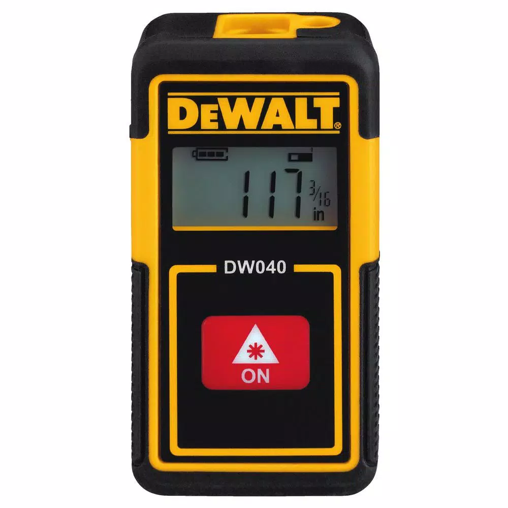 The DEWALT (R) 40 ft. Pocket Laser Distance Measurer is small and easy to use with 1-button operation. This laser distance measurer can be used for a wide range of applications from electrical and plumbing to basic home measurements. It has a rechargeable lithium-ion battery and comes with a wrist strap for added convenience.