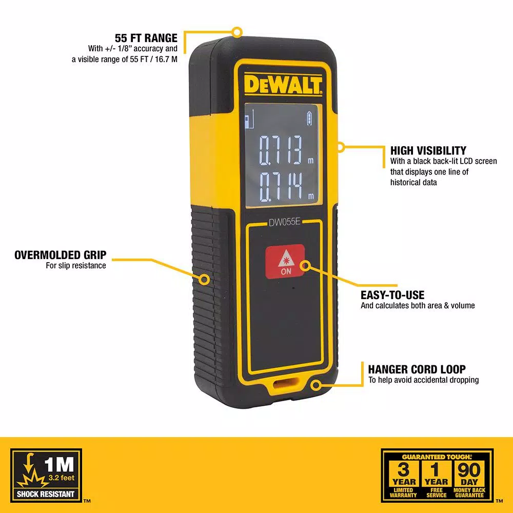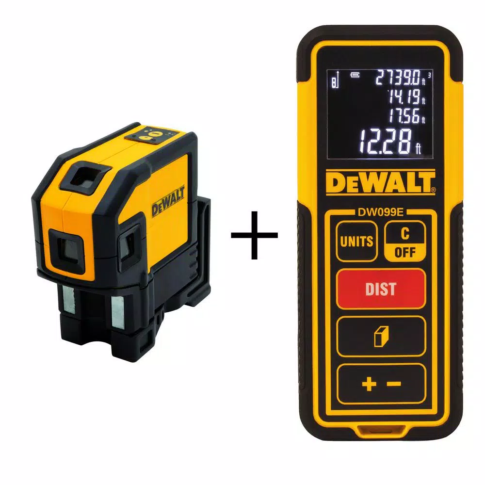 The DEWALT Combilaser Self Leveling 5-Spot Beam/Horizontal Line Laser Level projects 5 bright spot beams for precise plumb and horizontal point transfer. Accurate to 1/8 in. at 100 ft., this laser also features a rear-projecting horizontal line which aids in additional leveling applications. It self-levels when within 4° of plane and the beam has an indoor visibility of 100 ft. The range of this handy leveling instrument can be extended to 165 ft. with a separately sold DEWALT laser detector. For a limited time get a bonus 100 ft. Laser Distance Measurer with purchase.