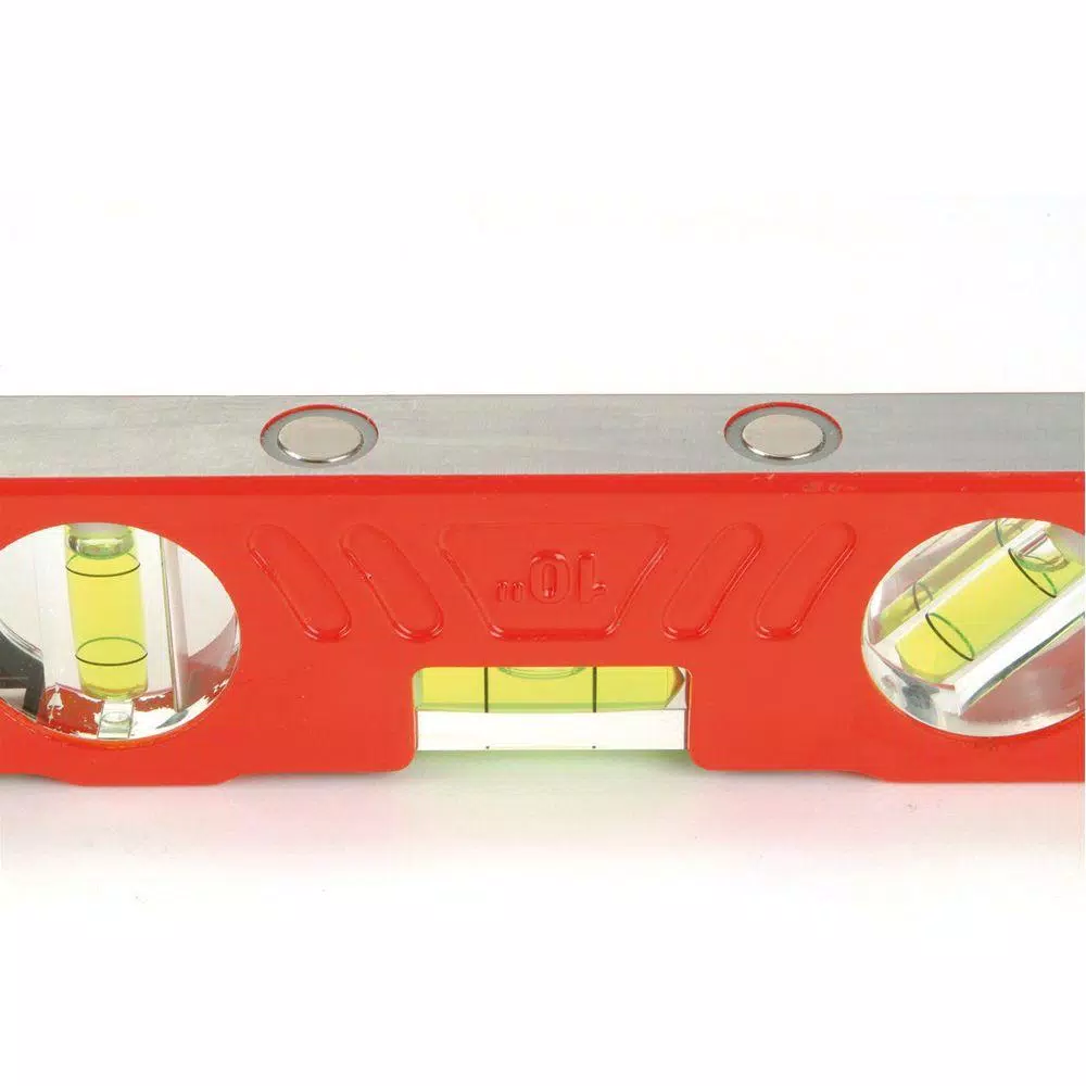 The Kapro magnetic cast torpedo level features 3 acrylic shock-resistant vials to help provide easy horizontal, vertical and 45ยฐ readings with an accuracy of up to 0.0005 in. The plumb site technology allows you to read the vial from the front and helps prevent neck and back strain. The heavy-duty cast-aluminum frame provides durability and the compact size helps you access small spaces.