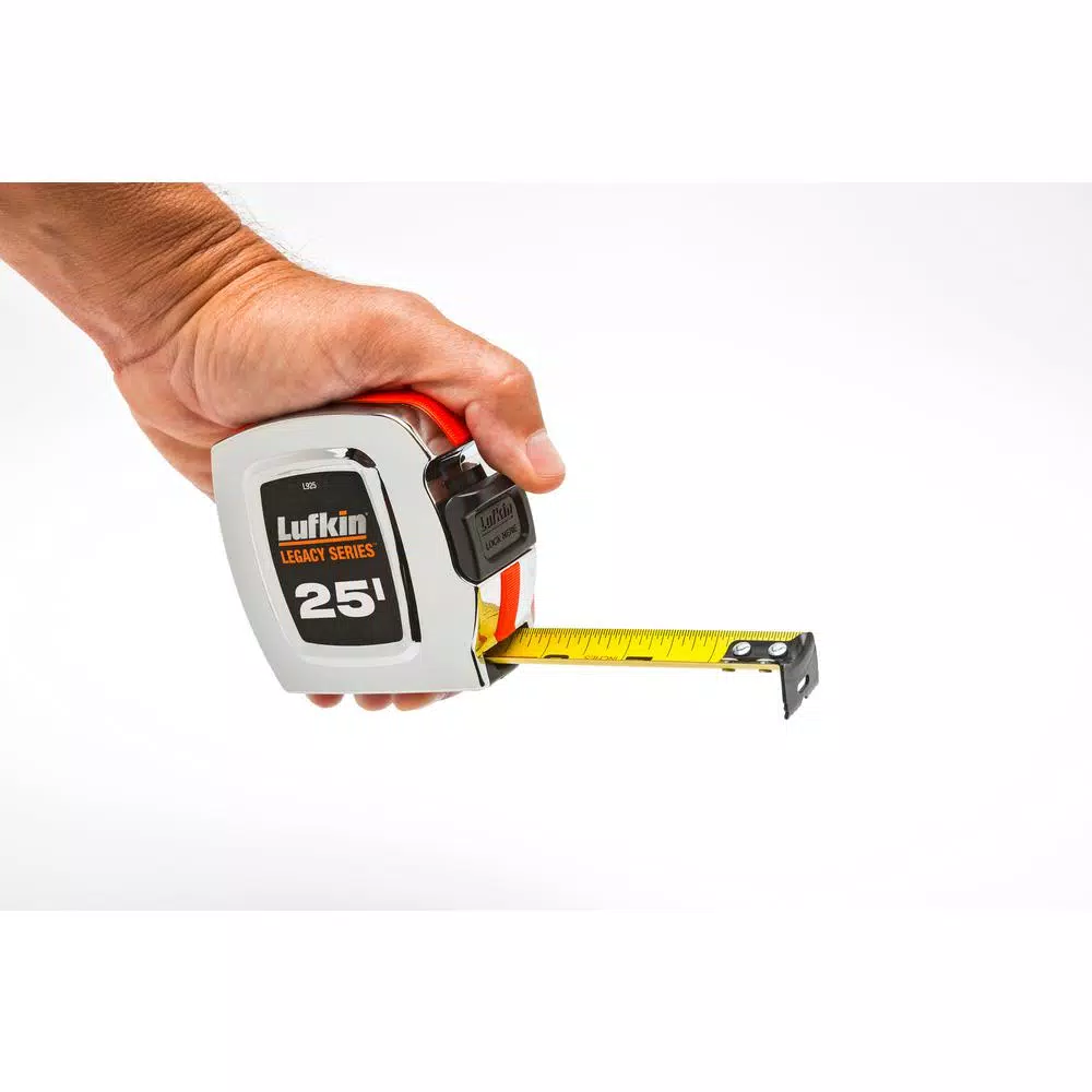Lufkin legacy series tape measures boast excellent blade durability and standout. Its distinctive Hi-Viz orange ribbed stripe provides improved control and grip as well as a striking design signature. The legacy series is destined to become a classic in its own right. These tape measures feature a classic design that is blended with todayβs performance, features and function.