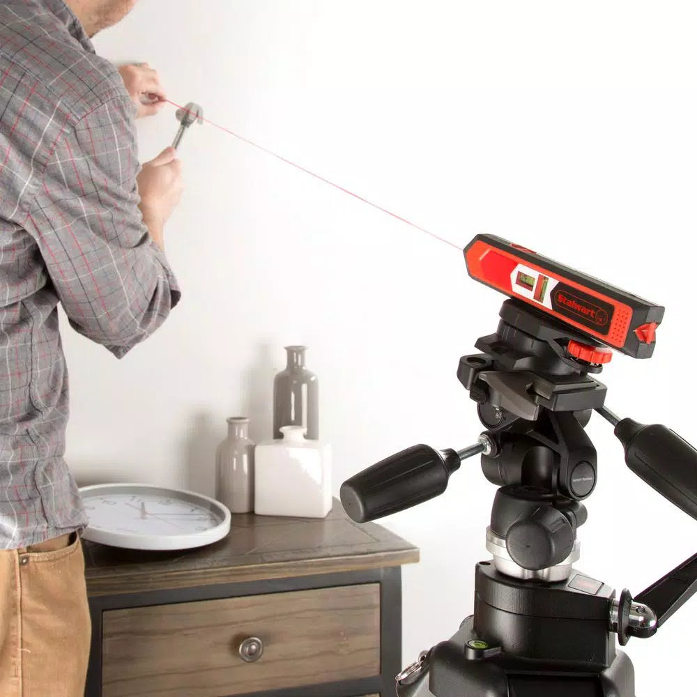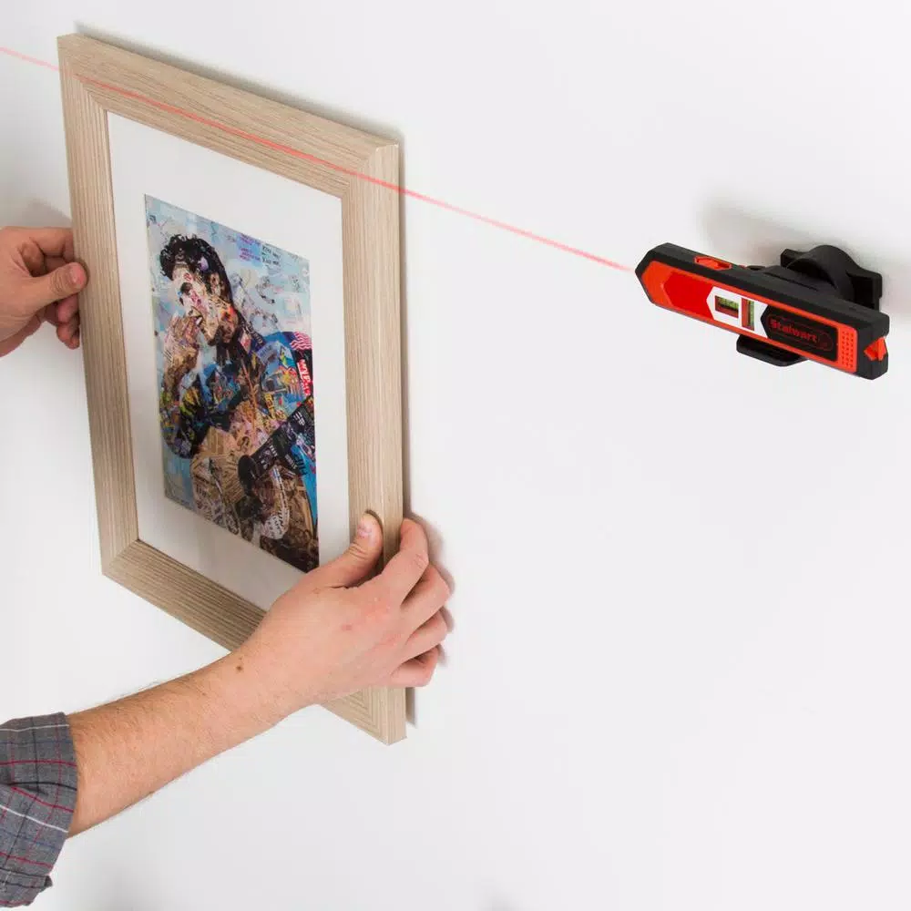 The Stalwart Combination Point and Line Laser Level offers precision measurements and has an easy to read measuring scale and vials which are printed directly on the level for added pinpoint accuracy. The 6.5 in. level also gives a 180-degree rotating view with a strong magnetic base, and offers a point range of 65 feet and a line range or 10 feet. With the impact resistant design and simple readability, this level is the perfect tool to use to measure and align in construction, installing shelving, laying flooring, aligning wallpaper, woodwork, home repair, hanging household items and home DIY projects. With the wide range of functions, this is an ideal tool for your home improvement needs and a perfect addition to any tool set.