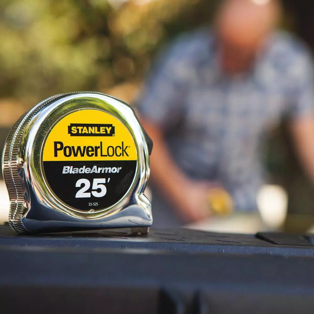 STANLEY POWERLOCKยฎ tapes fit your toolbelt, your hand, and the job. 10 ft. of reach* and a durable case make this tape dependable on any jobsite. Tru-Zeroยฎ hook end provides accurate inside/outside measurements and the secure blade looks keeps tape blade from moving while measuring. Protective full tape blade coating extends tape life against abrasion and heavy use**.