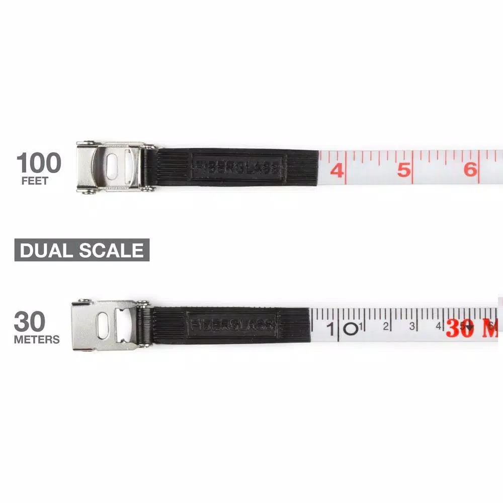 - Dual 100 ft. (1/8 in. increment) and 30 meter (1 mm increment) scales