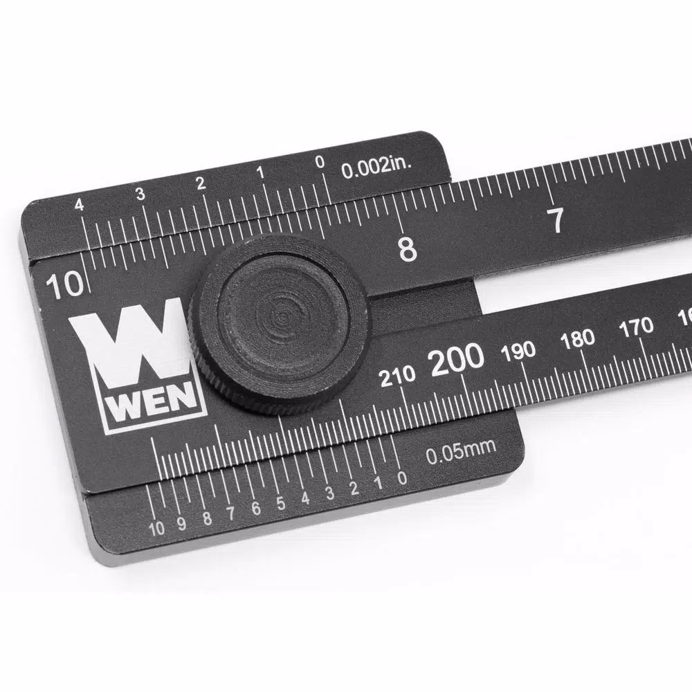 Remember when you had an offset gauge, ruler and adjustable square all in 1-tool. The WEN Aluminum Marking Gauge provides a variety of helpful woodworking applications for users of all kinds. Unlock the center knob to freely slide the gauge back and forth. This allows you to manually take caliper-grade measurements with 0.002 in. precision. Vernier scale includes both metric and imperial markings, depending on the needs of the task at hand. This allows users to mark out workpiece reference lines, align tool fences and set exact cutting depths on their router tables or table saws. Sturdy aluminum alloy construction provides a durable long-lasting straight edge while the laser-etched markings maximize precision and prevent fading. With a WEN Offset Gauge, the possibilities are endless. Remember when you had a tool that did it all. Remember WEN.